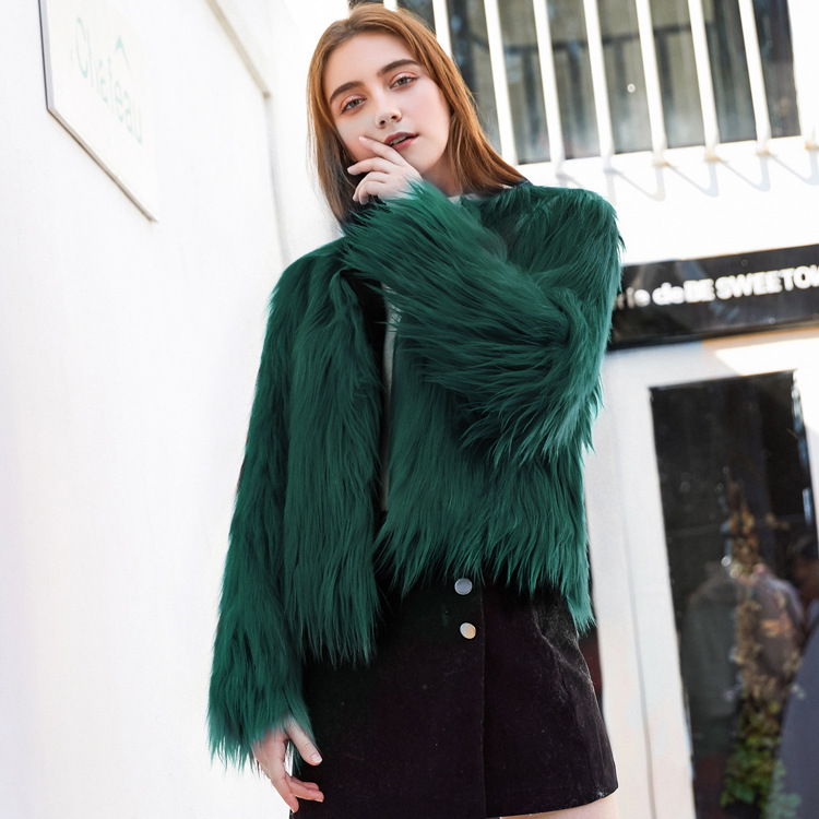 HSF AliExpress التجارة الخارجية توريد الفراء تقليد الفراء بلون غسلها معطف طويل الفراء المرأة قصيرة الخريف والشتاء