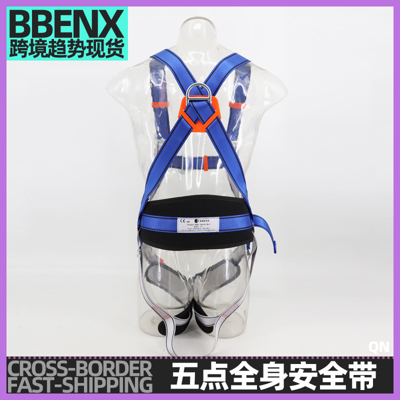 خمس نقاط حزام أمان لكامل الجسم مع حبل تسلق الجبال وتسلق الصخور حبل أمان مضاد للسقوط خطاف كبير مضاد للسقوط حزام أمان معلق