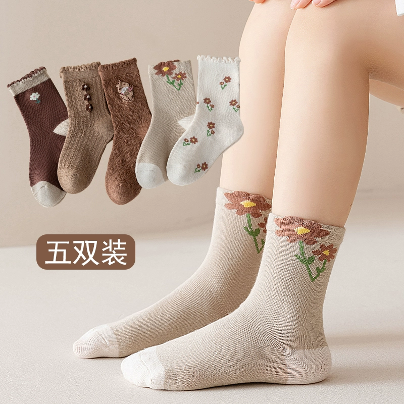 جوارب للفتيات، جوارب منتصف الساق للفتيات الصغيرات، جوارب للربيع والخريف على الطراز الكوري، جوارب أطفال عصرية، جوارب قطنية قابلة للتنفس للربيع للأولاد