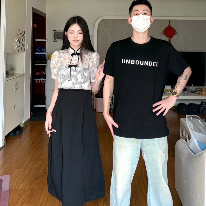تي شيرت رجالي صيفي طويل من Guofeng لعام 2023 بأكمام قصيرة