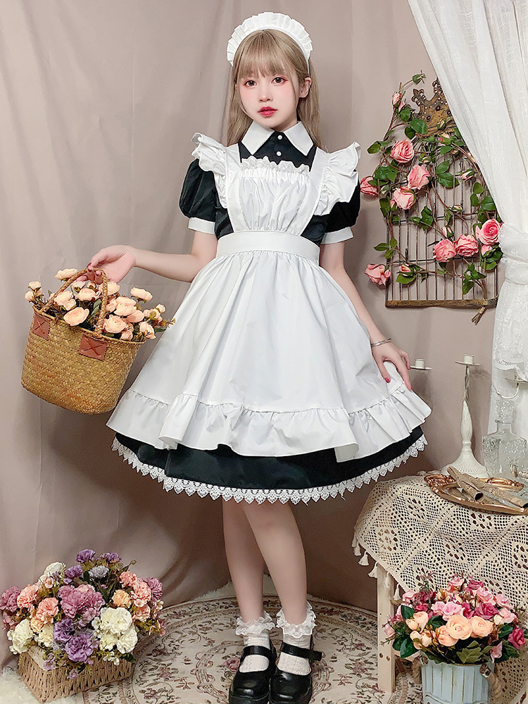 النمط الياباني قصيرة الأكمام تنورة قصيرة تأثيري البدلة لطيف لوليتا موحدة اللباس اليومي التقليدية خادمة خادمة البدلة