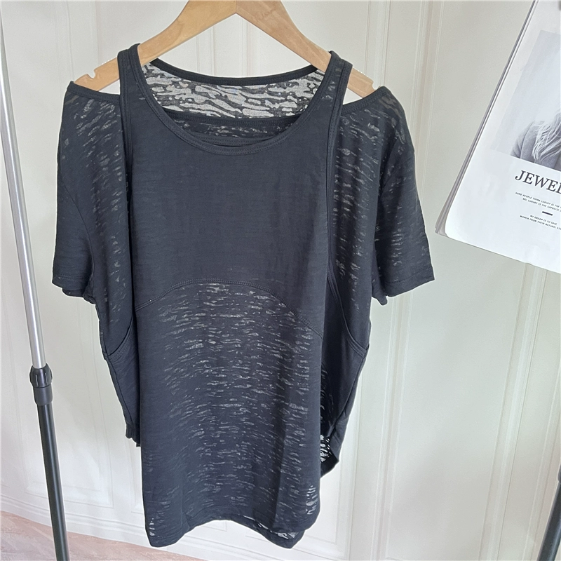 ملابس يوجا رياضية صغيرة مثيرة بدون أكتاف للسيدات بأكمام قصيرة