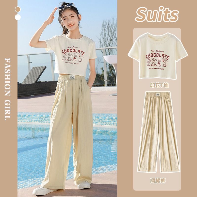 فستان صيفي للفتيات بدلة بأكمام قصيرة للأطفال سراويل على الإنترنت ذات طراز أجنبي مشهور للأطفال الصغار ملابس صيفية غير رسمية جديدة بأكمام قصيرة للفتيات