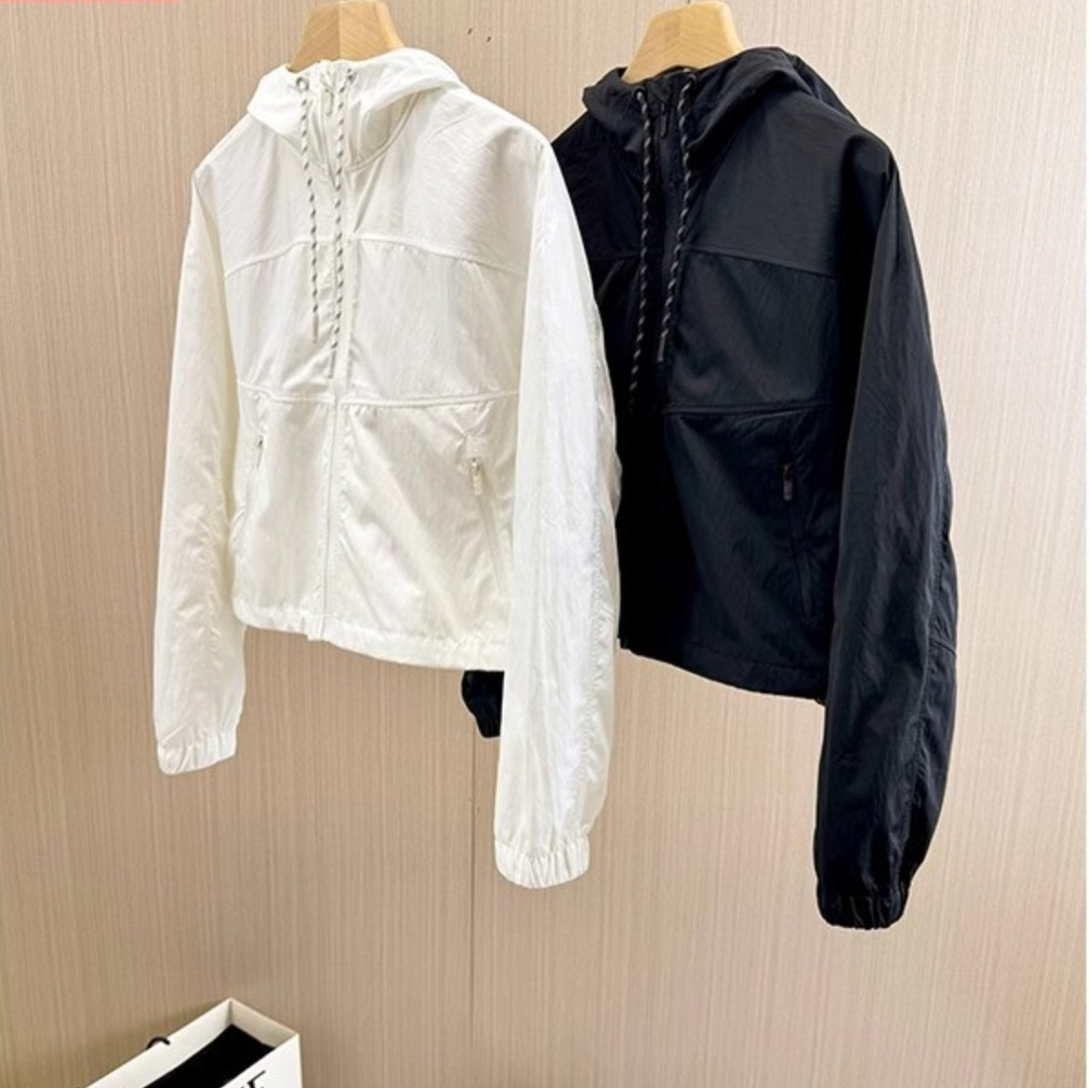 هناك مئات الملايين من المظهر الجيد ~ معطف قصير بغطاء للرأس بلون سادة للنساء 24 سترة رياضية ترفيهية للربيع والصيف مقاومة للرياح
