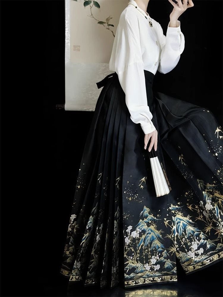 تنورة Qianli Yuduo اليومية ذات وجه الحصان بدلة أصلية جديدة على الطراز الصيني الجديد 2024 Jiangshan Hanfu للسيدات للربيع والصيف
