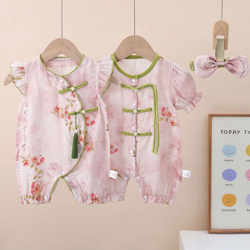 بذلة صيفية جديدة على الطراز الصيني للأطفال الرضع فستان اكتمال القمر مائة يوم خارج فستان الأميرة نمط خفيف ورقيق