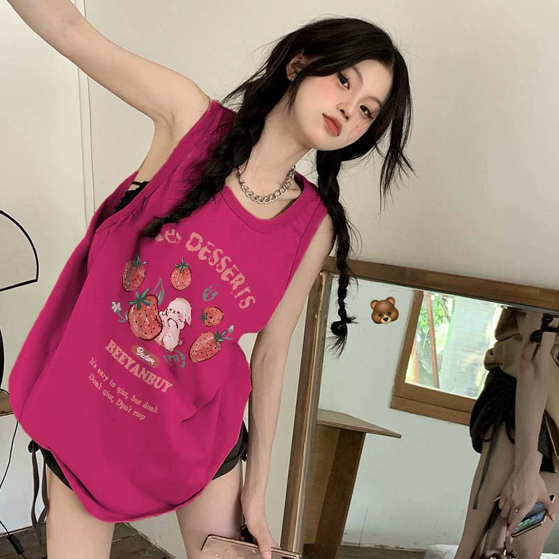 سترة نسائية صيفية مثيرة للفتيات 2023 لون فاكهة التنين الجديد أبيض بدون أكمام علوية كبيرة الحجم فضفاضة