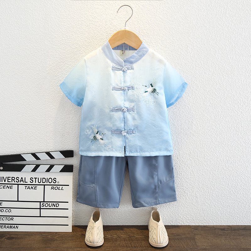بدلة قديمة صيفية جديدة للأولاد بأكمام قصيرة في 1 يونيو، بدلة أداء لكتاب الأغاني للصبي الصغير، بدلة تانغ