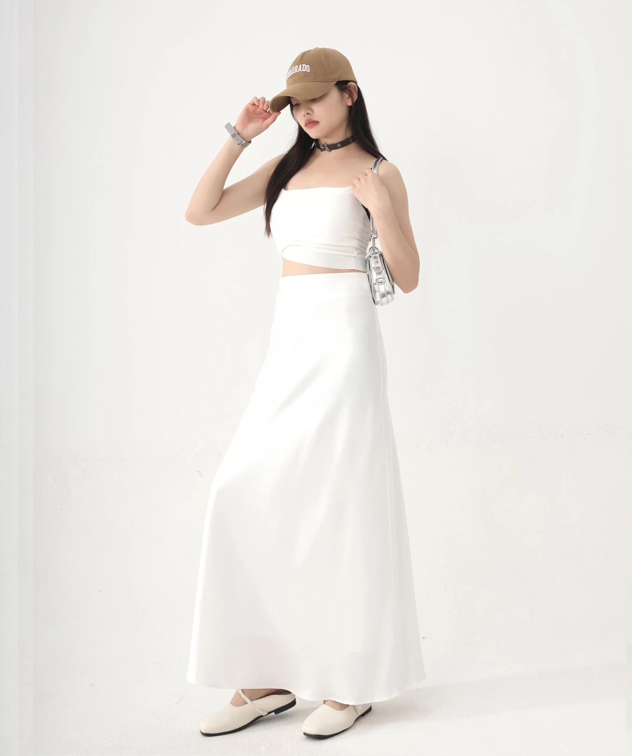 طقم تنورة صيفية بحمالات من قطعتين على طراز Xiaoxiang