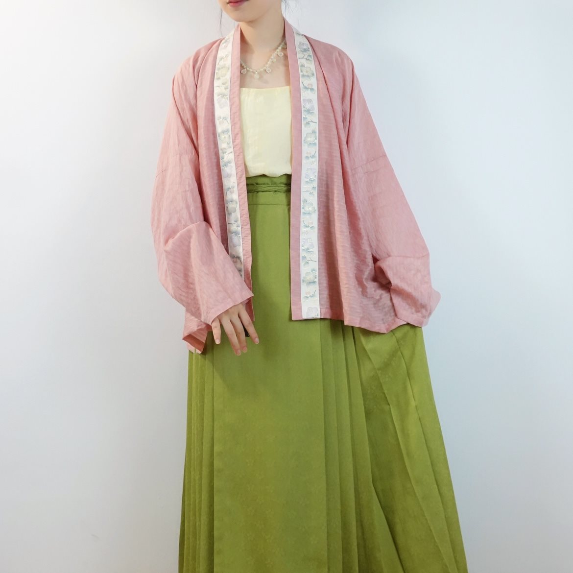 [San Qiu Shi Li] أكمام الطائرات ذات النمط الداكن من سلالة سونغ اليومية هانفو ايوسل، تنورة وجه حصان شبه منحرف من الجاكار
