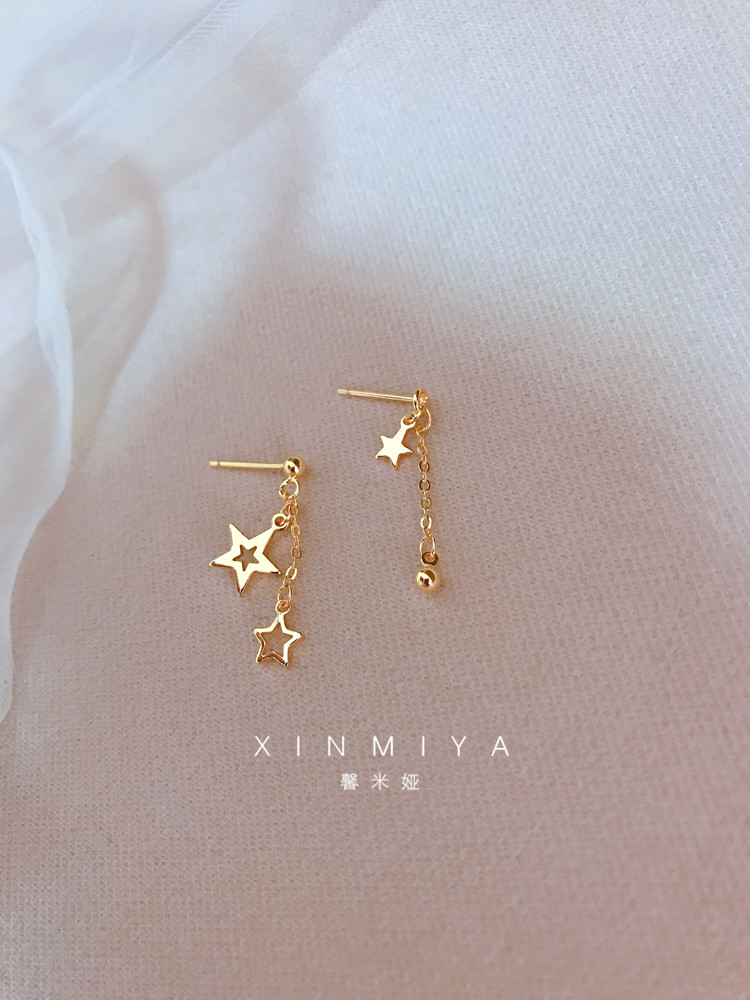 أقراط من الفضة الإسترليني غير متناظرة مجوفة على شكل نجمة خماسية