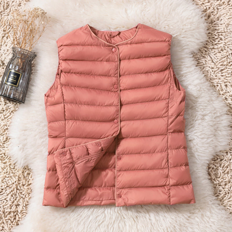2023 أزياء الشتاء خفيفة الوزن جولة الرقبة أسفل سترة سترة الداخلية تانك المرأة سترة الموضة الكتف حجم كبير ارتداء الداخلي لباس خارجي