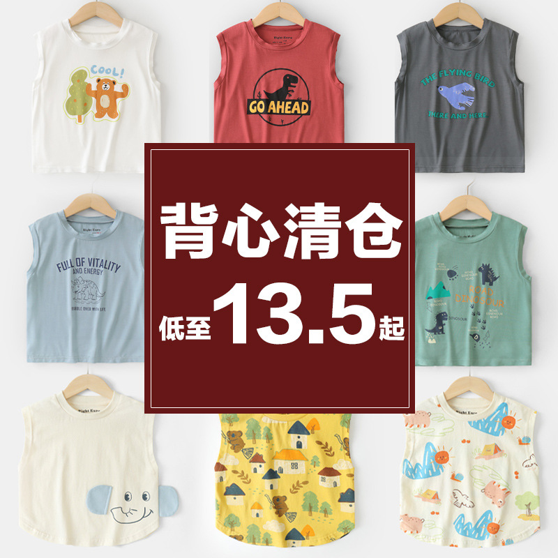 [مجموعة التخليص سترة] الأولاد سترة ملابس الأطفال الأطفال طفل بلا أكمام تي شيرت الصيف المد U14809
