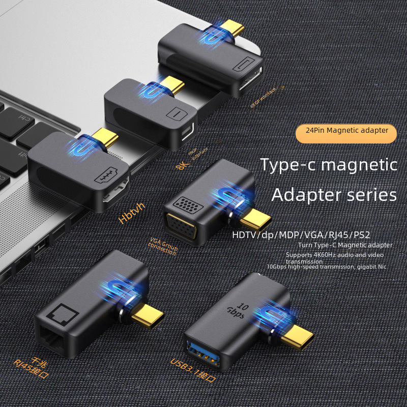 محول مغناطيسي من النوع C HDTV/miniDP/VGA/RJ45 منفذ شبكة 4K @ 60 هرتز HD شاشة عرض الصوت والفيديو