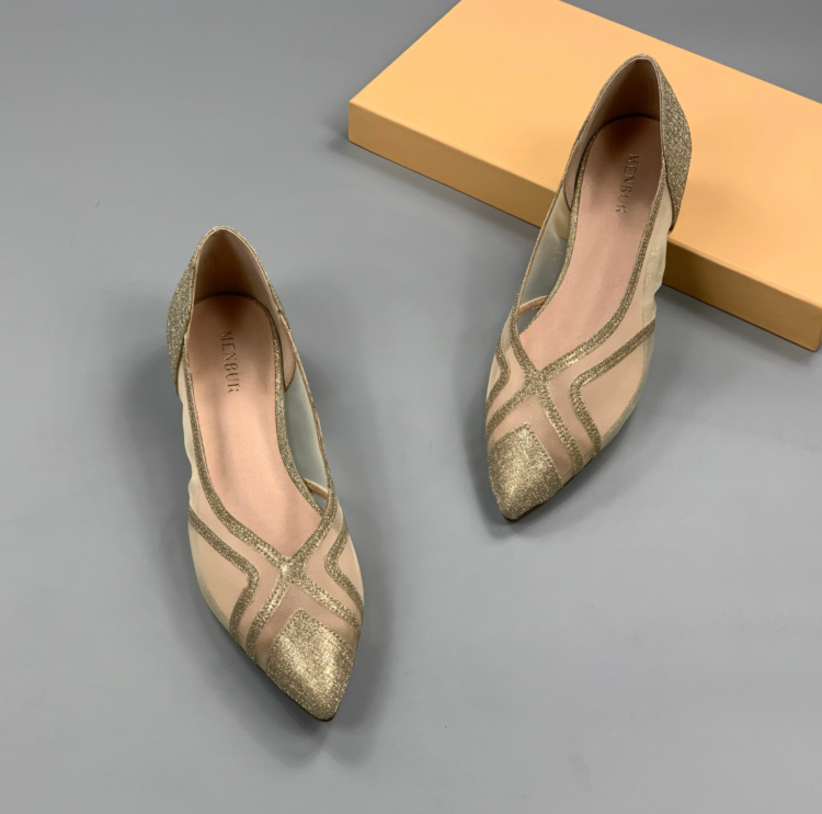 أحذية نسائية جديدة للنساء مدببة كعب مسطح شبكية شبكية شبكية -أحذية واحدة من أحذية فردية متعددة الاستخدامات على الطراز الخيالي الأوروبي والأمريكي التجارة الخارجية ذات الحجم الكبير