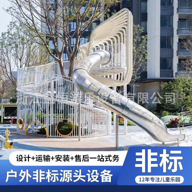 شريحة كبيرة من الفولاذ المقاوم للصدأ في الهواء الطلق في منطقة ذات مناظر خلابة لمصنعي مرافق التسلية المجمعة للأطفال غير المزودة بالطاقة
