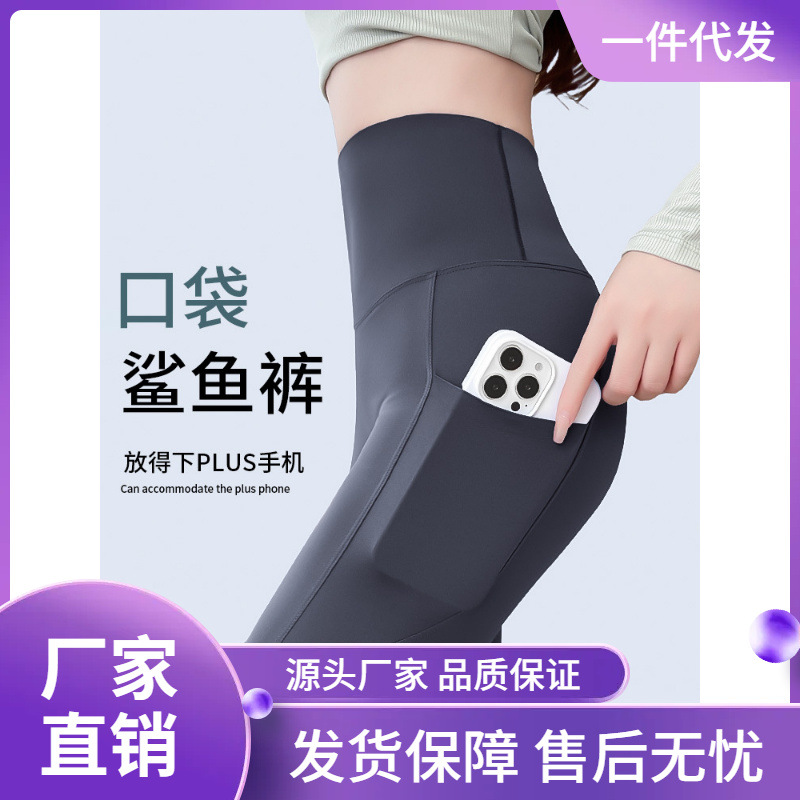 طماق المرأة ملابس خارجية الربيع والصيف عالية الخصر الورك طماق اليوغا الرياضة اللياقة البدنية باربي جيب القرش السراويل رقيقة