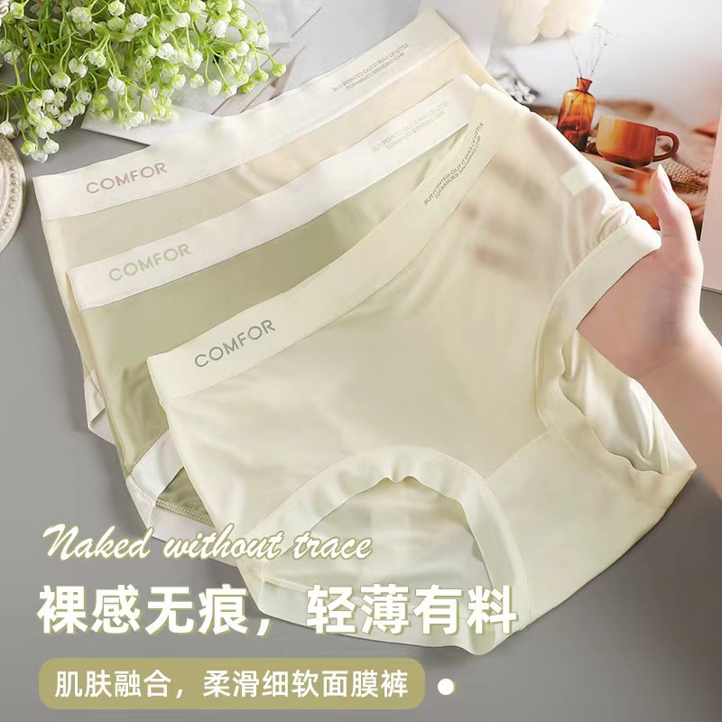 قناع صيفي من الحرير الجليدي بدون أثر ملابس داخلية نسائية عارية حمض البوليلاكتيك مضاد للبكتيريا المنشعب سراويل نسائية رفيعة