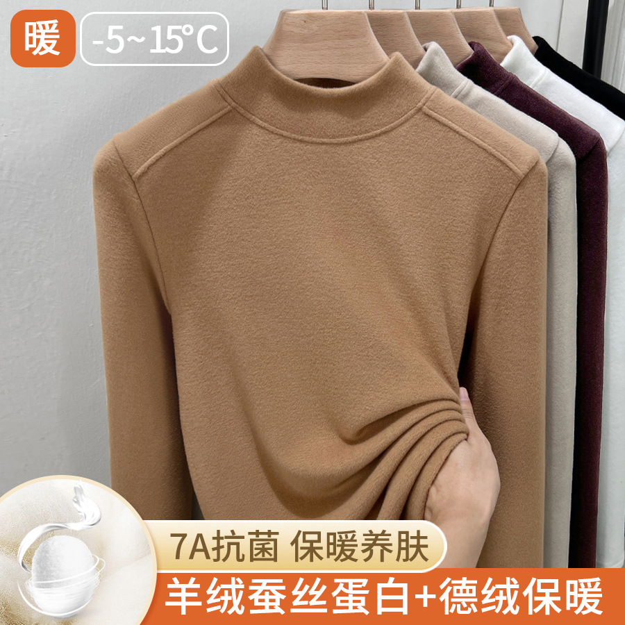 قميص سفلي مخملي ذو ياقة متوسطة على الوجهين للنساء 2023 ملابس داخلية شعبية جديدة للربيع والخريف مبطنة بالصوف سميكة ودافئة من دقيق الشوفان