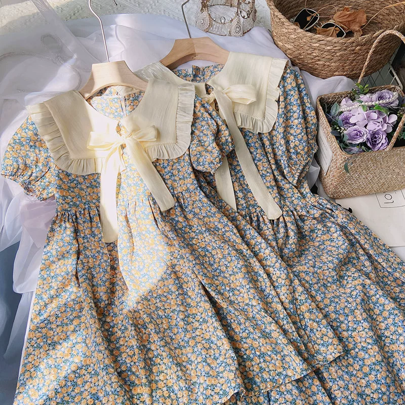 الوالد -فستان فستان 2024 الصيف النسخة الكورية الجديدة من الأمومة والإناث للأطفال الشاطئ