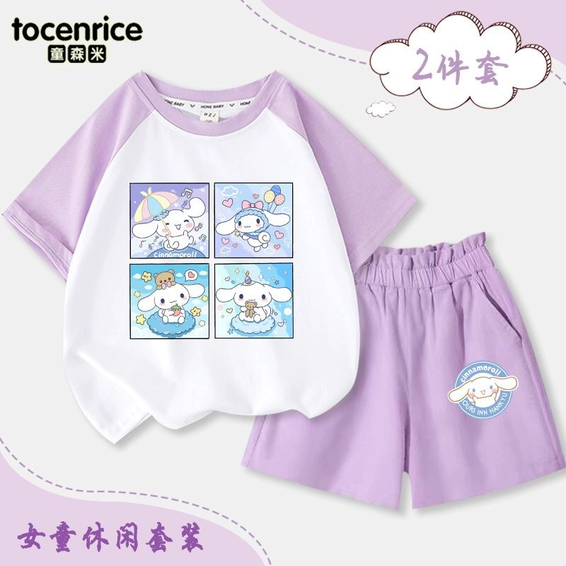 Yumui Dog Girl Short -Sleeved t -Shirt Set 2024 New Summer Mid -Childrens inserted الكتف ، شورت ، Two -Pite Tide 7