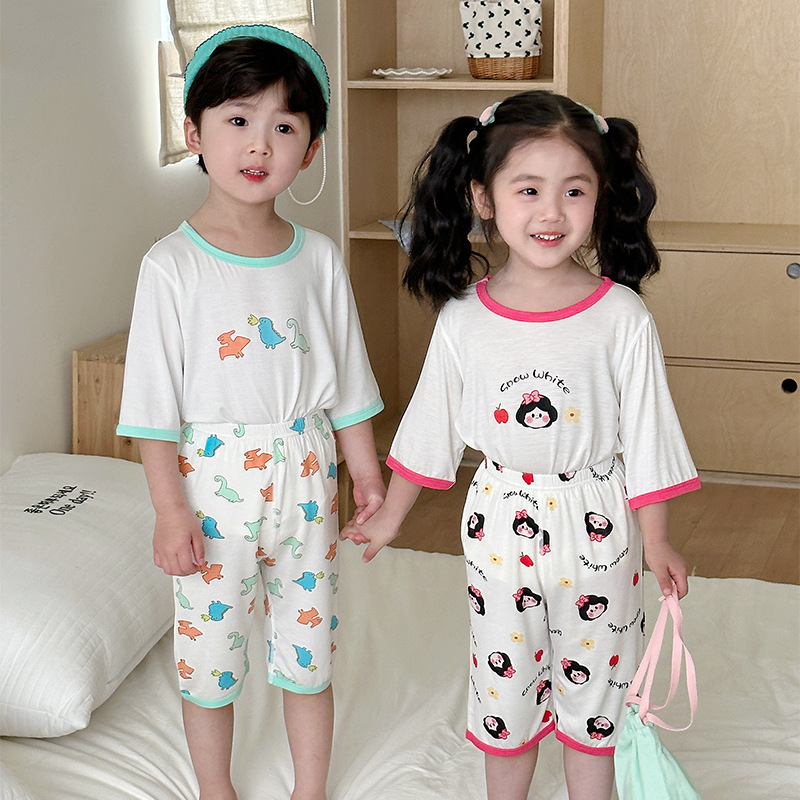 أرنب الخبز 2024 موديل جديد لصيف 2024 ملابس منزلية للأولاد والبنات بدلة كارتونية برقبة دائرية وتكييف هواء بسبع نقاط