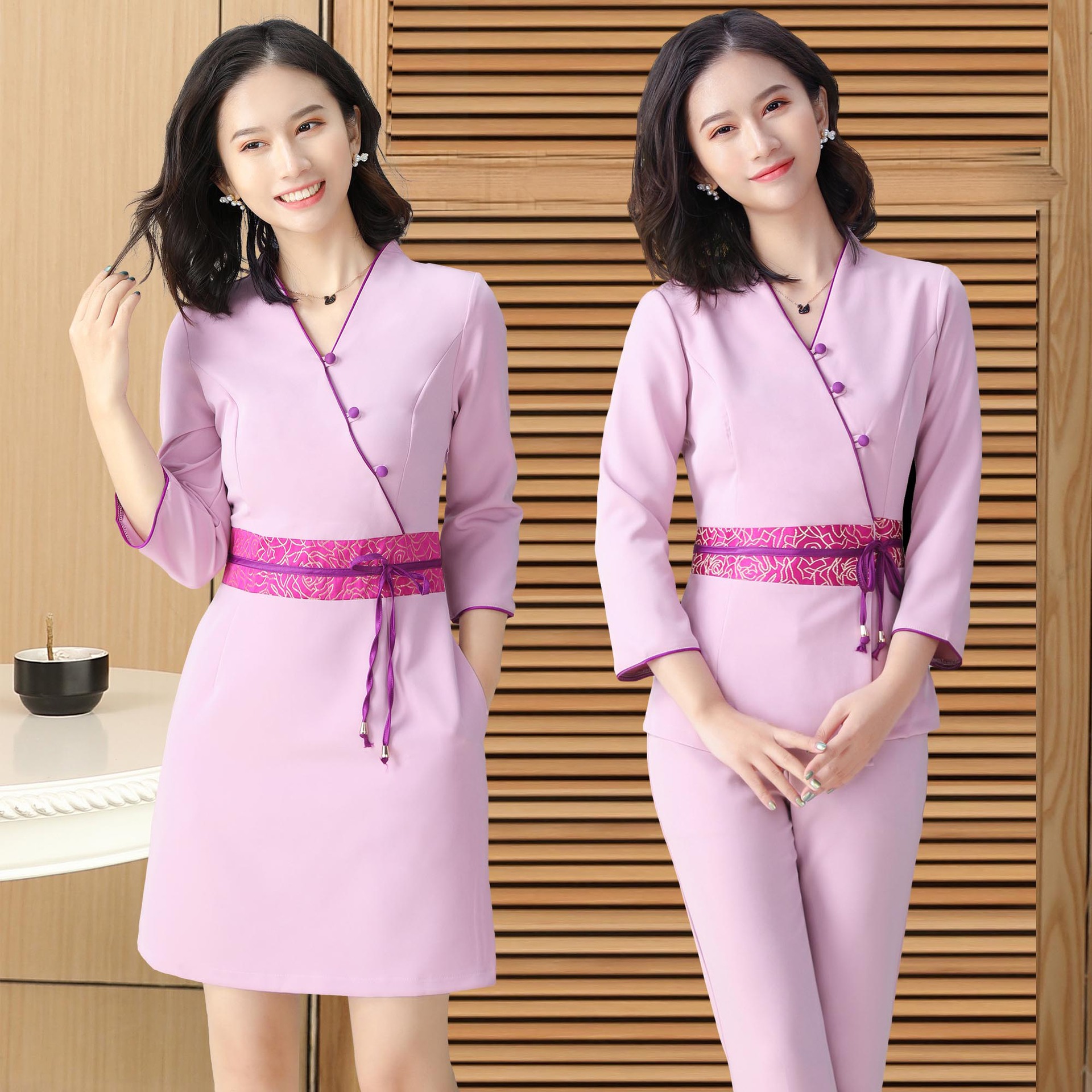 ملابس عمل التجميل الصيني مركز صحة المرأة البدلة الصينية موضة فندق تدليك القدم تدليك باديكير فني ملابس الشتاء