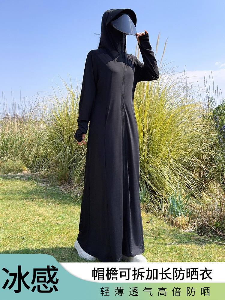 ملابس واقية من الشمس للسيدات 2024 صيف جديد كامل الجسم طويل مضاد للأشعة فوق البنفسجية خفيف الوزن قابل للتنفس عربة من الحرير الجليدي ركوب ملابس واقية من الشمس