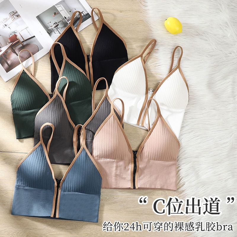 سترة قصيرة رياضية جديدة موديل 2024 ذات لون عميق على شكل حرف v وسحّاب أمامي وظهر جميل، ملابس داخلية بدون خياطة عند الصدر مع وسادة صدر
