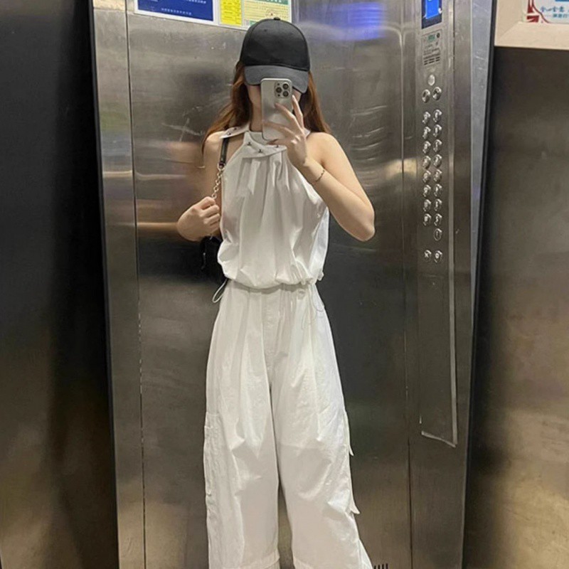 تصميم الكتف الأمريكي بدون أكمام ورقبة علوية نسائية صيفية برباط خصر ضيق وحزام عصري سويت سبايس جيرل