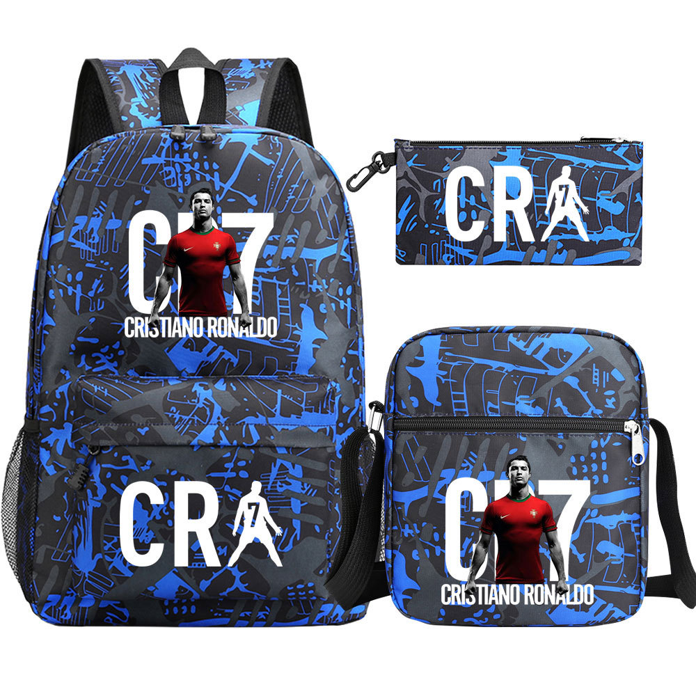 نجم كرة القدم الرياضي الجديد C Luo مطبوع على حقيبة مدرسية للشباب مكونة من ثلاث قطع للرجال والنساء