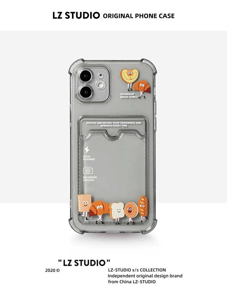 Lz الأصلي الكرتون الخبز أبل 14 حافظة بطاقة شفافة 15pro جديد 16 حافظة هاتف محمول 13promax مناسبة آيفون 12 يمكن أن تحمل صور بولارويد هواوي p 50 برو حامل البطاقة الغطاء الواقي