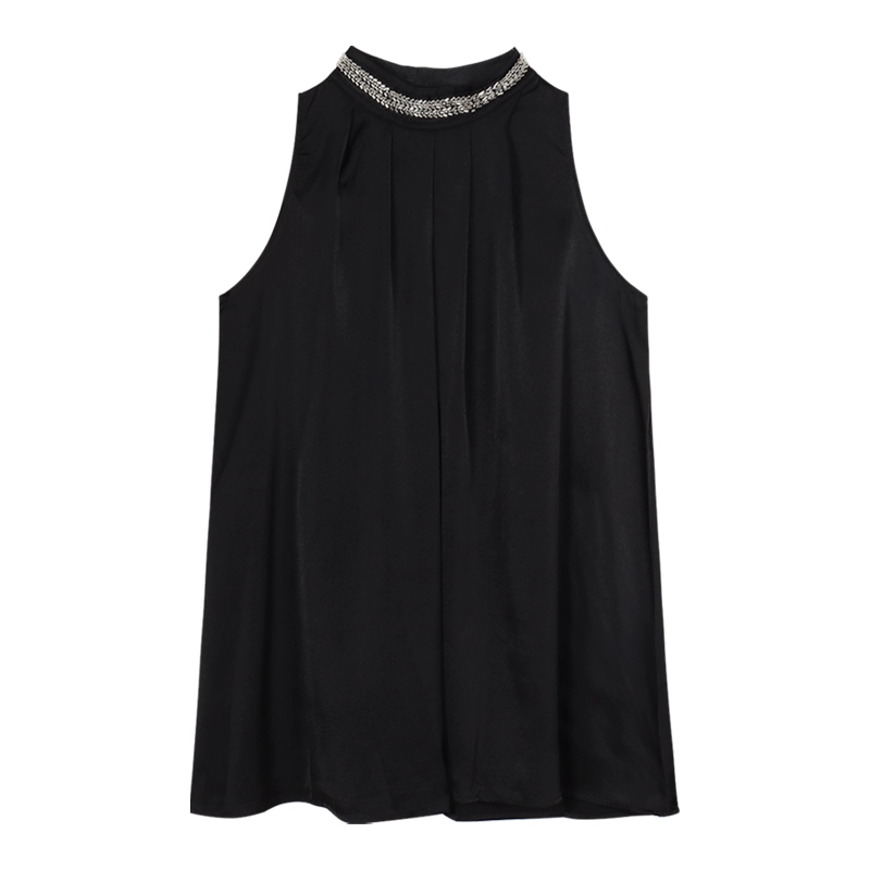 فستان حريمي صيفي أسود فضفاض بدون أكتاف من الساتان