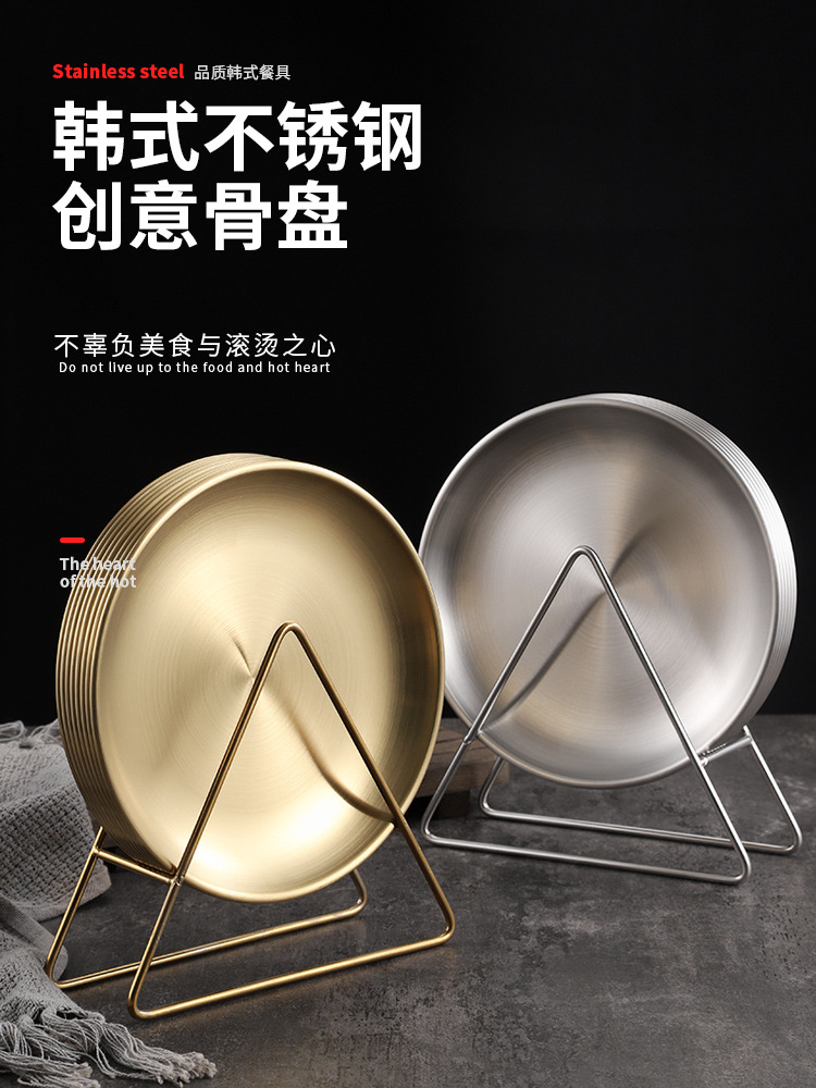 OF9D طبق عظم من الفولاذ المقاوم للصدأ على الطراز الكوري يناسب طاولة طعام تناول طبق القمامة والخبث طبق العظام طبق الوجبات الخفيفة الذهبي والماء