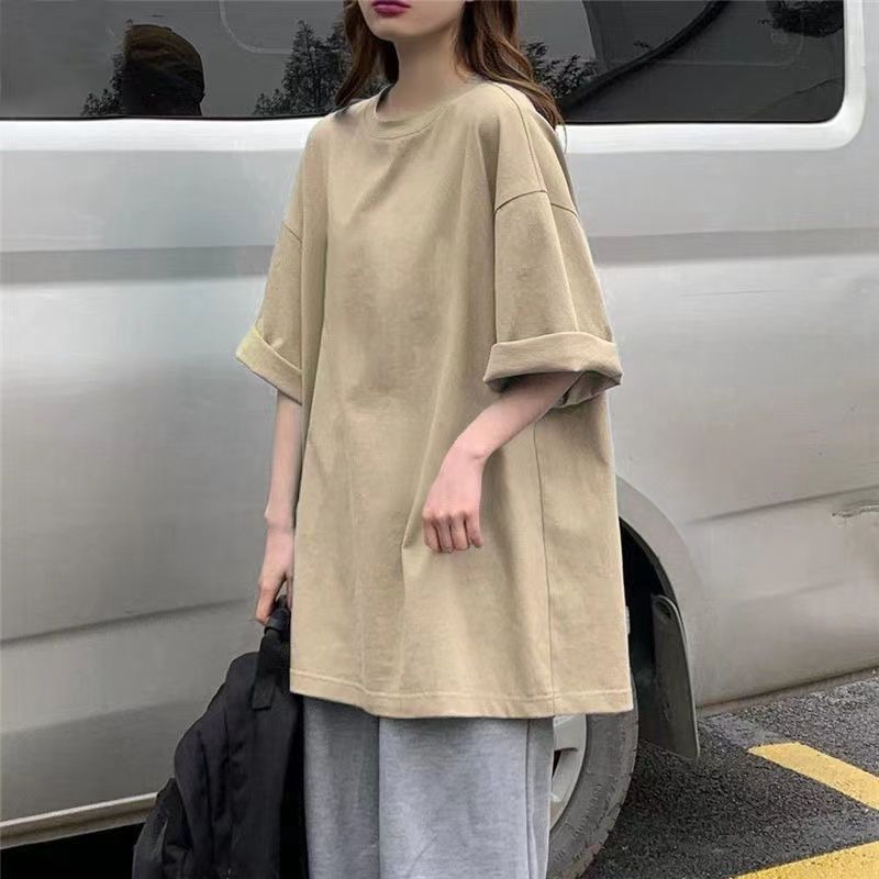 تي شيرت صيفي بأكمام قصيرة بلون سادة بنمط هاراجوكو، قميص داخلي عصري كبير الحجم للطالبات