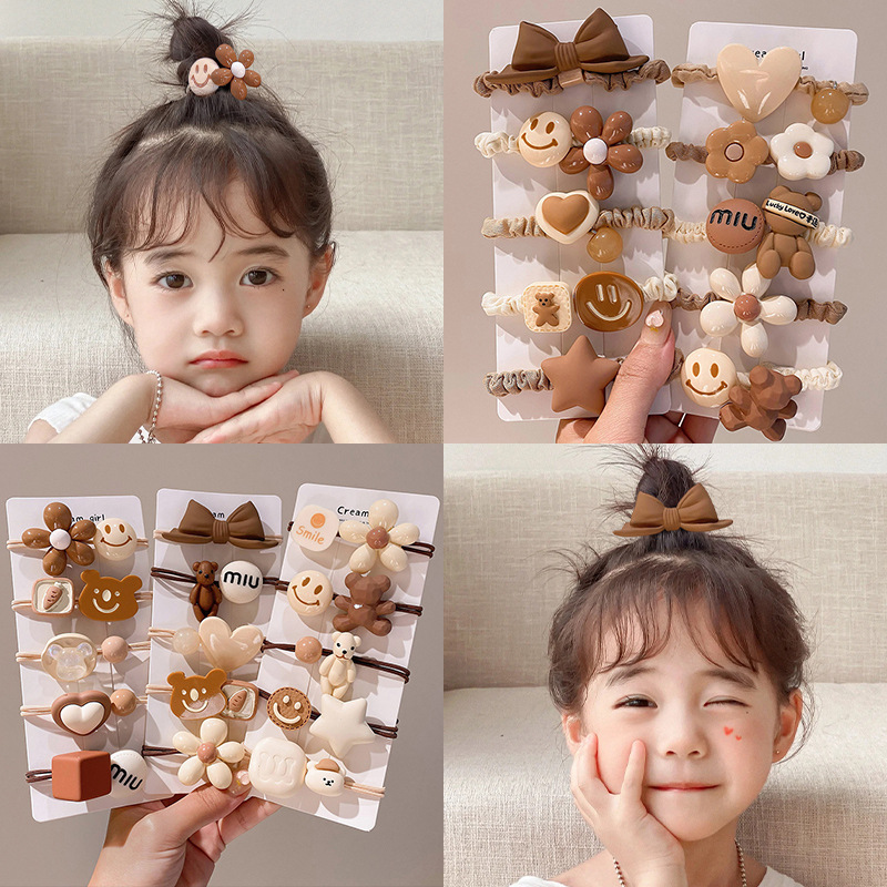رباط شعر كرتوني عالي المظهر للأطفال للخريف والشتاء سلسلة من الحليب البني حبل شعر الفتاة ربطة شعر حبل إكسسوارات شعر الفتاة