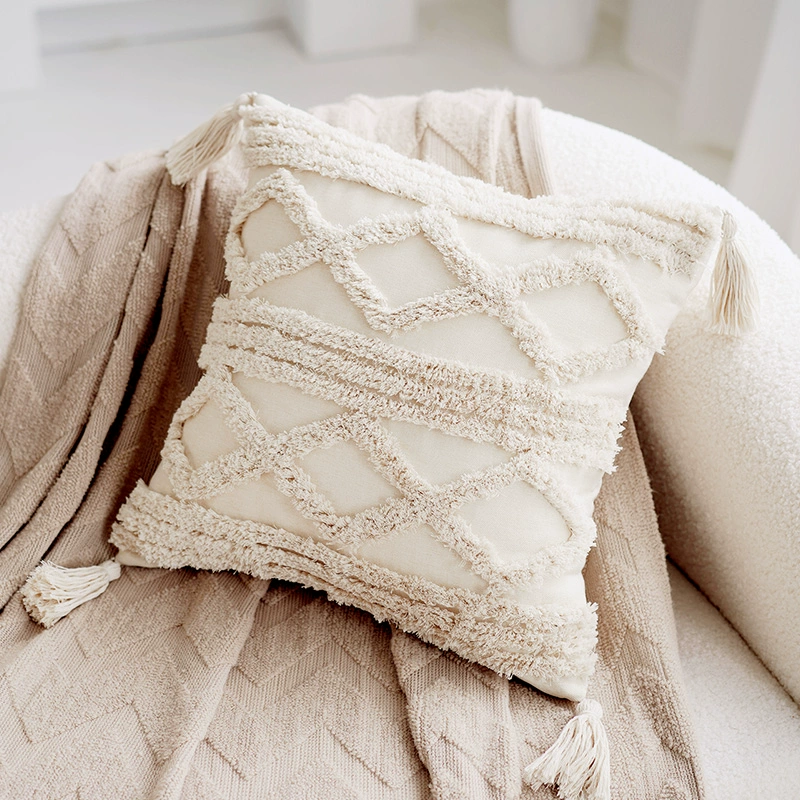 غطاء وسادة لتزيين غرفة المعيشة المغربي البوهيمي البيج على الطراز العرقي، وسادة أريكة B & B، وسادة خصر لنافذة الخليج