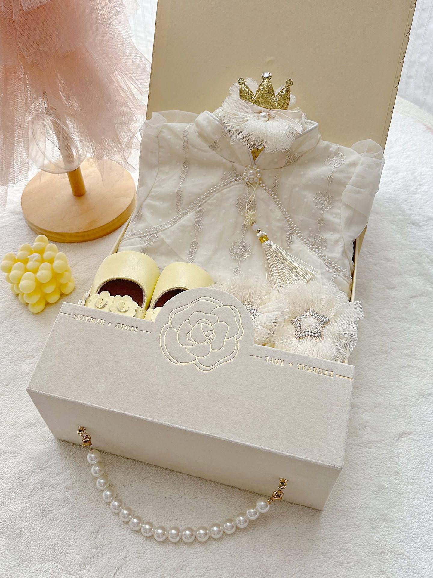 تنورة هانفو للأطفال حديثي الولادة من مائة يوم، صندوق هدايا يناسب النمط الصيني، هدية للفتيات، فستان أطفال راقي
