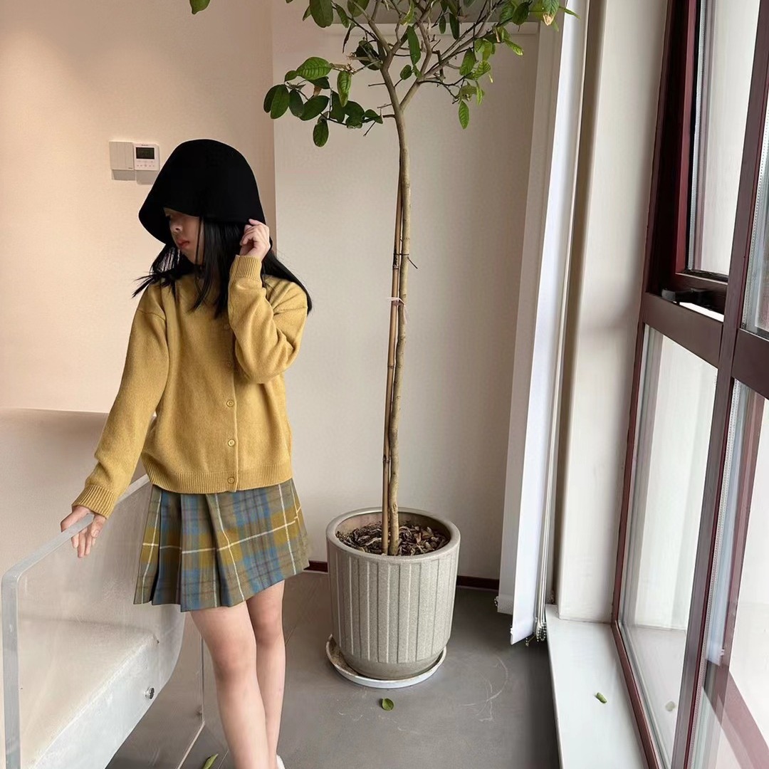 [متوفر] سترة محبوكة جديدة لخريف وشتاء 2023AW للأطفال من الصوف الدافئ بلون يانغ بلون سادة