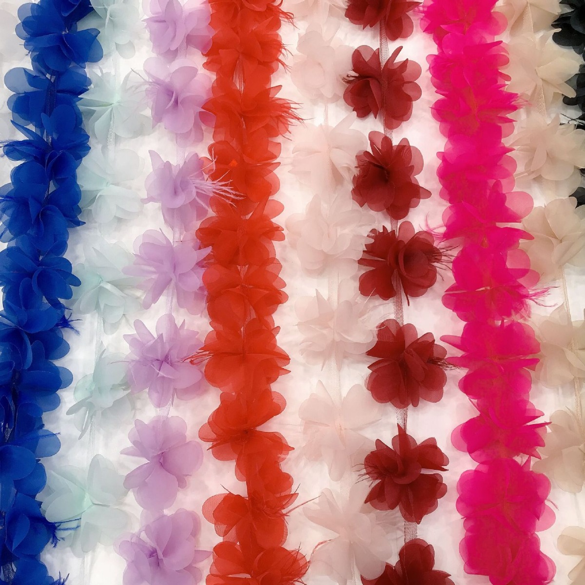 جديد النعامة الشعر الأورجانزا زهرة اليدوية ثلاثي الأبعاد زهرة دبوس الملابس ملصق القماش ملصق البتلة الاكسسوارات والمجوهرات