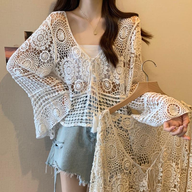 معطف قميص منقوش ملون للنساء لصيف 2024 قميص رقيق وفضفاض صغير على الطراز الياباني للحماية من الشمس وأكمام طويلة
