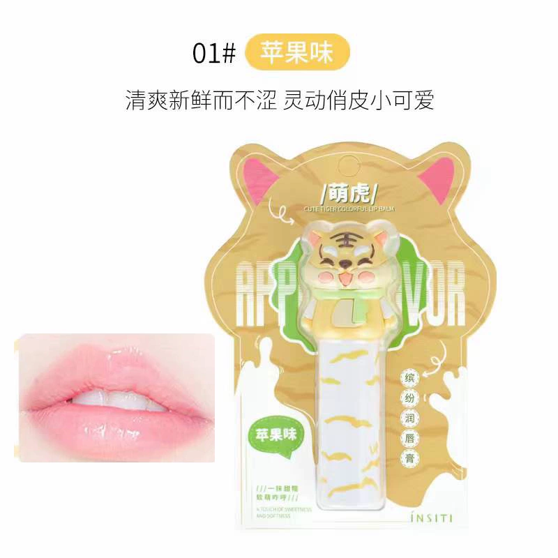 مرطب شفاه ملون من Yi Shiting Menghu، نكهة حليب التفاح والفراولة، مرطب ويتلاشى خطوط الشفاه، واقي الشفاه INSITI