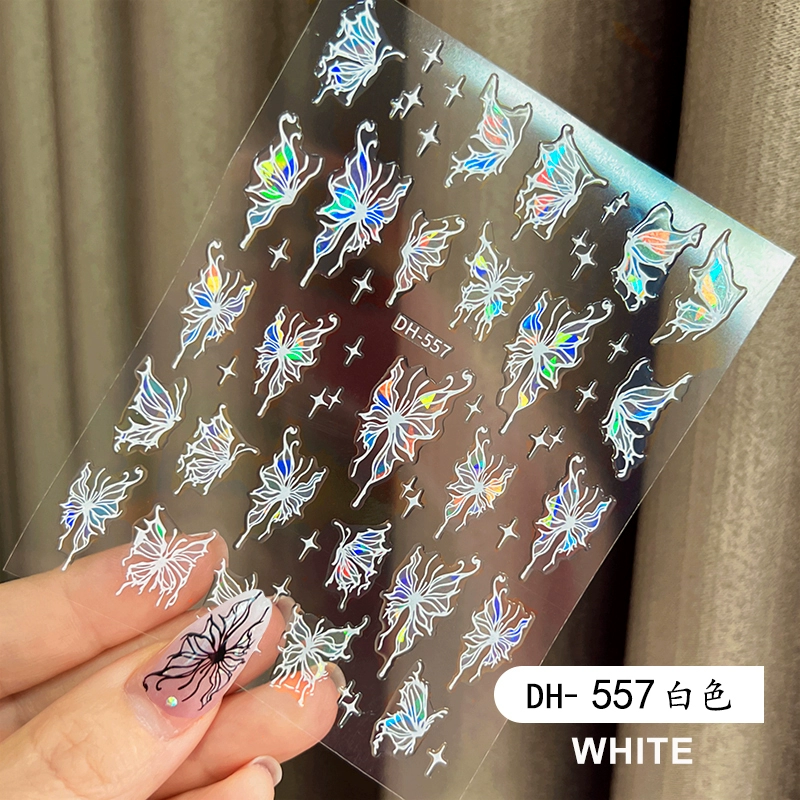 على الإنترنت مشاهير الفراشة ملصق مانيكير رفيع قاسي راحة ملونة أورورا أبيض الغزل البيضاء الجليد الفراشة