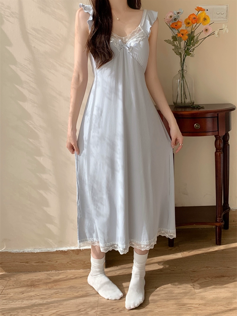 ملابس منزلية طويلة الصيف مع الدانتيل
