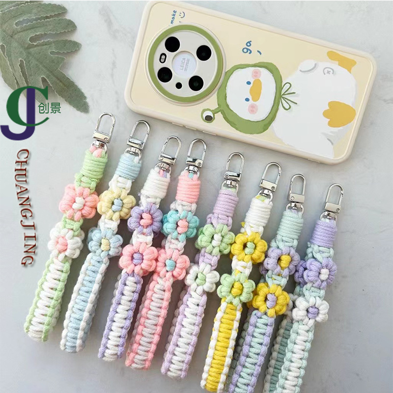 حبل الهاتف المحمول المنسوج يدويًا على شكل زهرة الأقحوان وملعقة السيارة وحقيبة الظهر بإبزيم قلادة حبل للهاتف المحمول الأوروبي والأمريكي