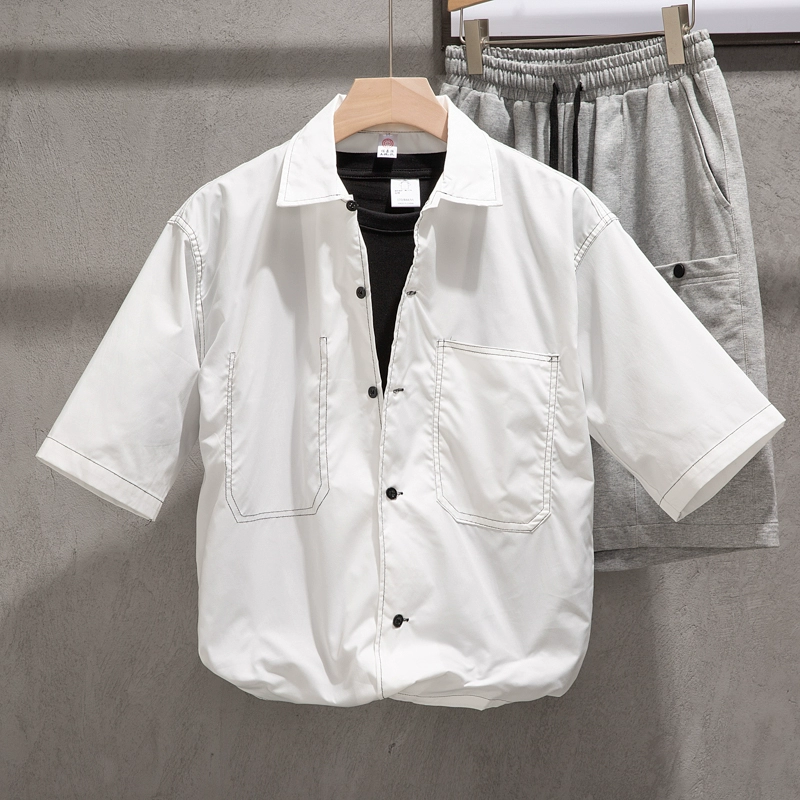 قميص جيب عمل كاجوال فضفاض بخمسة أرباع كم على الطراز الكوري