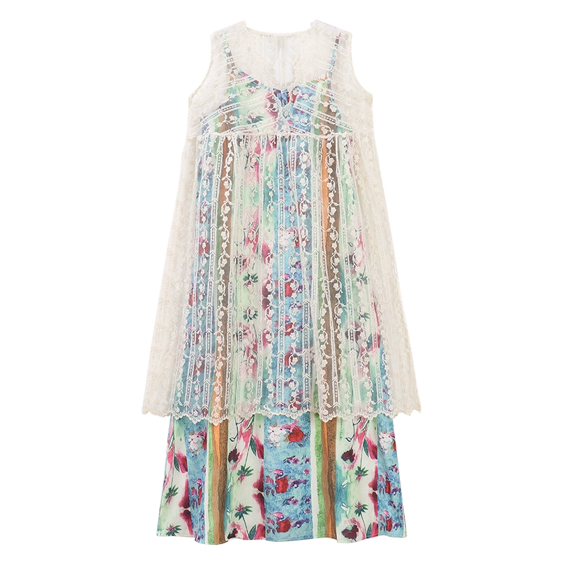 بلوزة من الدانتيل الثقيل لباس خارجي من الساتان فستان مطرز