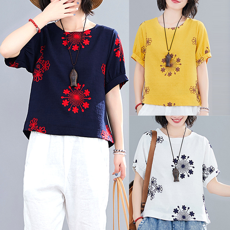 عادية القطن الكتان البلوز التخسيس نمط العرقية المطرزة زهرة فانوس كم كل مباراة السفر بلوزة المرأة
