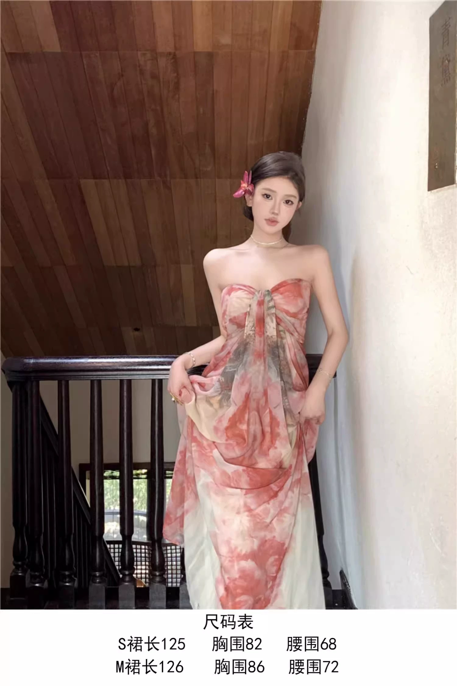 الوردي منقوشة تنورة المرأة الصيف الجديدة عالية الخصر التخسيس تنورة مطوي تصميم المتخصصة تنورة طويلة تنورة