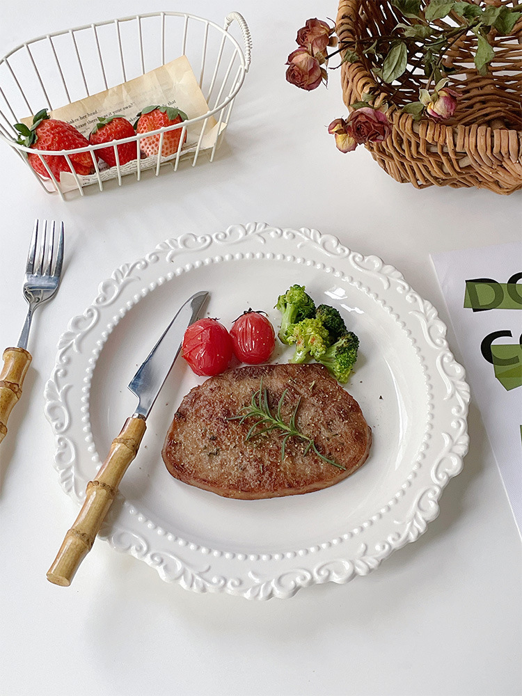 أدوات مائدة سيراميك منقوشة من Mooney بالجملة BB4C تناسب لوحة الطراز القديم طبق طبق غربي منزلي